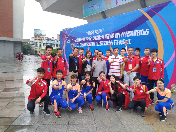 5月19日至20日,“德育龙杯”2017-2018年全国跳绳联赛杭州富阳站比赛举行,我校花式跳绳队17名队员、3名教师代表学校参赛。