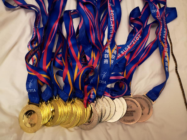 本次全国跳绳联赛共设置了36项类别153个项目,共有来自全国13个省(市、自治区)的860余名运动员参加。我校花样跳绳代表队在领队邵国平,教练员郭洪光、殷珺带领下,参加了22项类别的比赛,共获得17个项目的全国冠军,22项全国第2-8名的好成绩。
