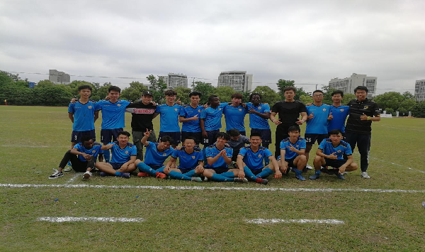 我校足球队由体育部教师潘晓任教练,队员们先是从强队如云的小组赛中凭借着三胜两平的良好战绩出线,在16强淘汰赛又以不屈的精神一路过五关斩六将,连连战胜传统强队杀进四强。由于我校留学生peter的加入,为我校足球队增强了实力,赢得了战机,但在5月17日的三四名决赛中,最终还是惜败于电力和海事大学,止步上海市高校组第四名。但虽败犹荣,因为此次比赛是我校足球队近期获得的最佳战绩。