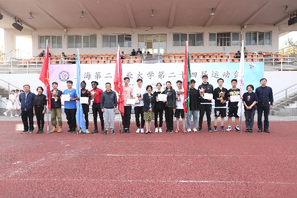 经过一天的激烈竞技,第二十四届运动会于下午三时在体育场闭幕,颁奖仪式同时举行。本届运动会学生组团体总分前三名分别为:工学部、经济与管理学院和国际交流学院。工学部、高等职业技术(国际)学院、经济与管理学院获“优秀组织奖”;文理学部、应用艺术设计学院获“体育道德风尚奖”;国际交流学院获“荣誉奖”。工学部彭砚明同学打破了男子200米和400米两项学校纪录。